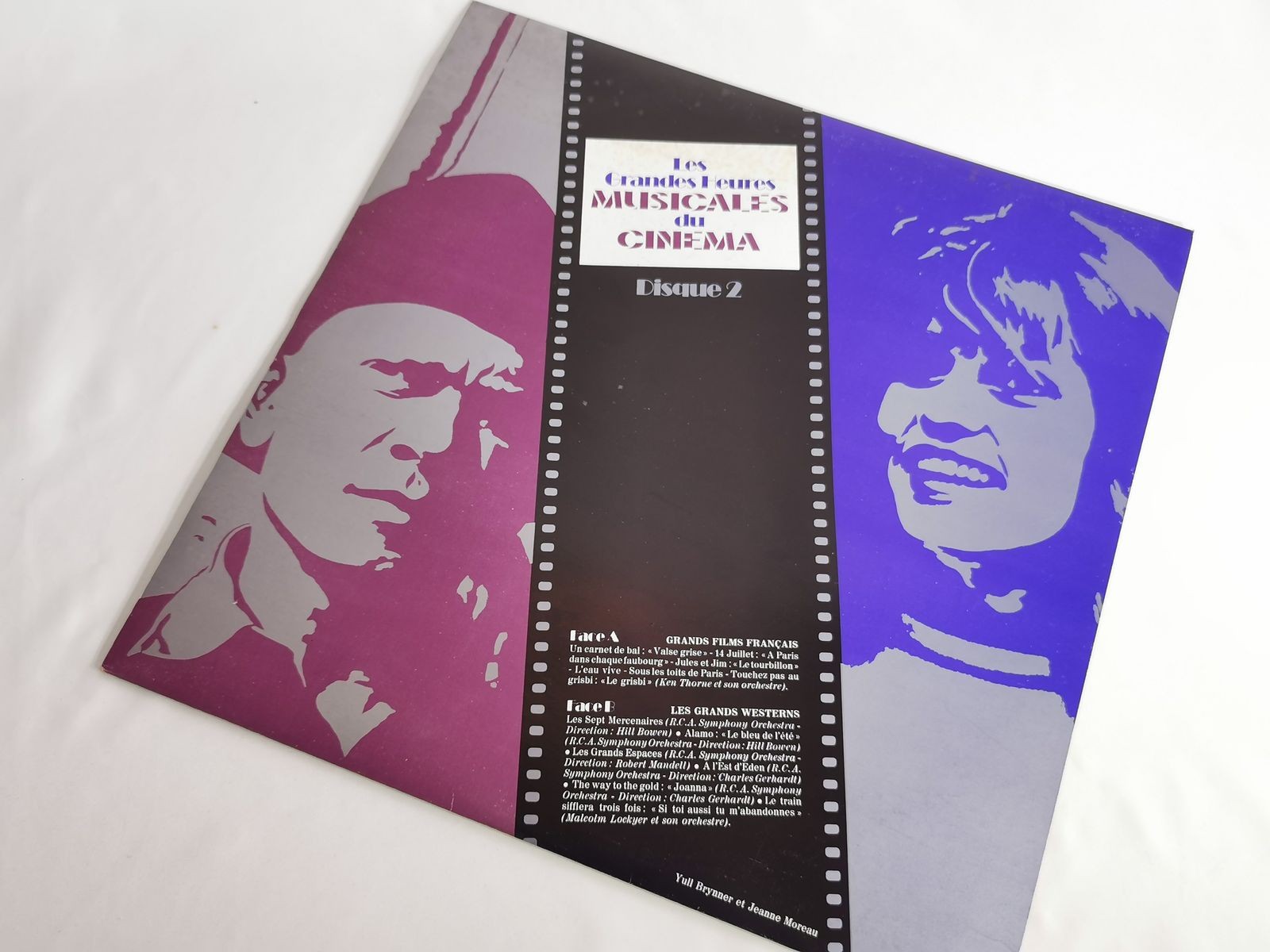 Disque vinyle 33T Les grandes heures musicales du cinéma – Disque 2, édité en 1976 par RCA – Sélection Reader's Digest. Compilation regroupant les grands thèmes de films français et de grands westerns. Disque en parfait état, pochette avec petites taches.