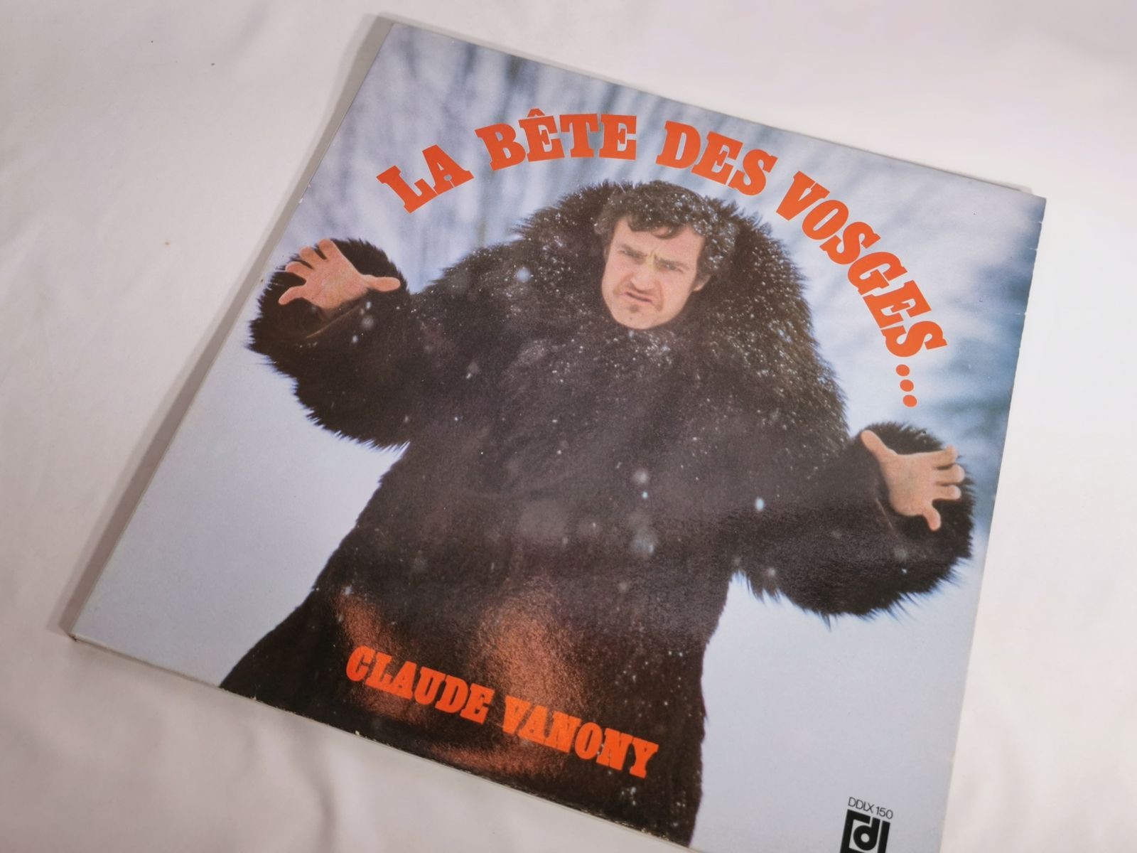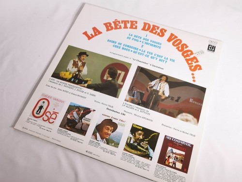 Disque vinyle 33T La Bête des Vosges interprété par Claude Vanony, paru en 1978 chez Disques Déesse. Enregistrement public mêlant humour et tradition vosgienne. Disque en parfait état, pochette avec petites taches à l’intérieur.