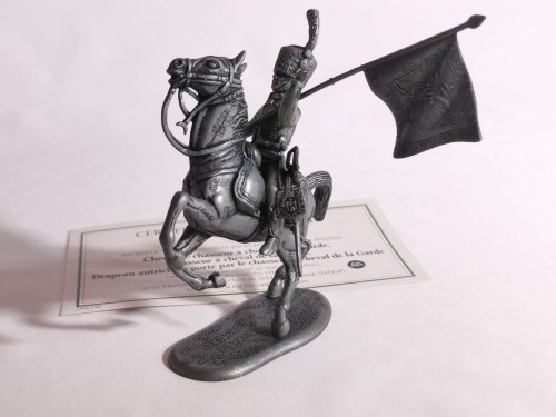 – Chasseur à cheval de la Garde, brandissant la hampe du drapeau ;