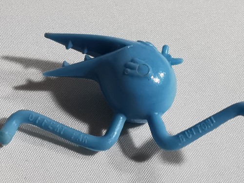 un Shadok au repos bleu, hauteur 2 cm, longueur 4 cm